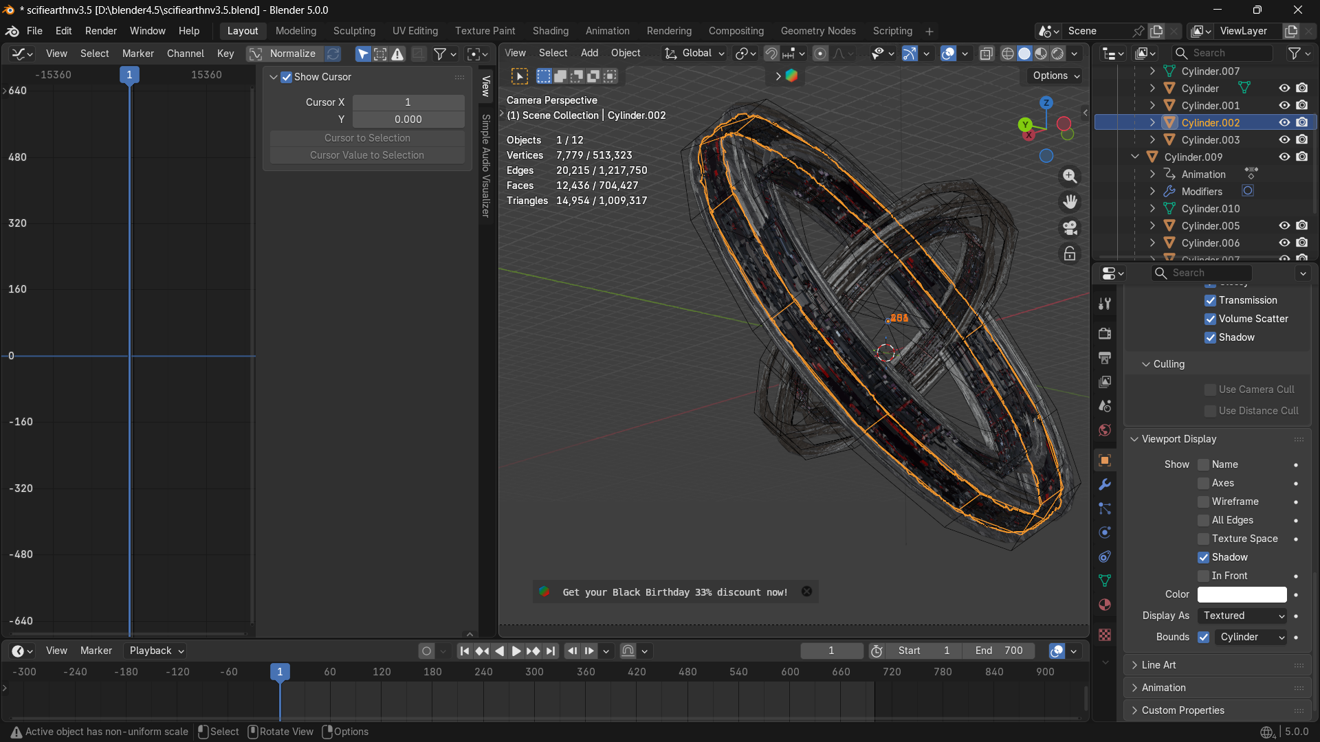 The downloadable blend file of my new blender project (High Poly + Animated). All external resources and the height maps are packed into the file.